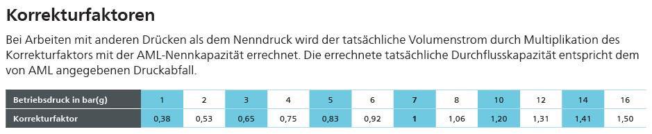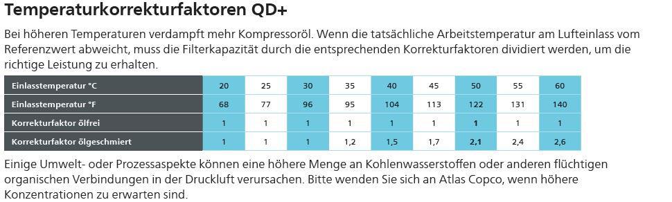 Um die Druckluftqualitätsklasse zu erreichen sind entsprechender Druckluftfilter oder eine Druckluftfilterkombination und Drucklufttrockner erforderlich.
