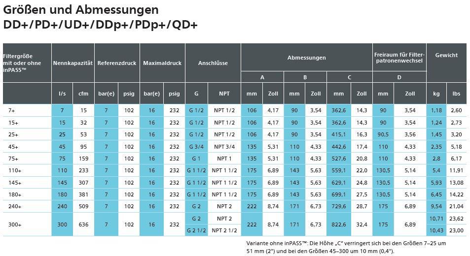 Welchen Filter benötigen Sie? Vorfilter DD+, Feinstfilter PD+, Aktivkohlefilter OD+, oder Staubfilter DDp+/PDp+?