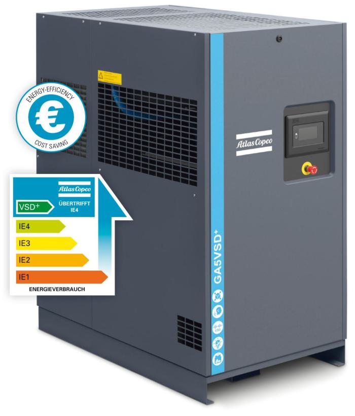 Mit nur 5 kW ist der GA 5 VSD+ der einzige Schraubenkompressor in seiner Leistungsklasse bis 5 kW mit innenliegender, besonders energieeffizienter Permanentmagnetmotor-Technologie.
