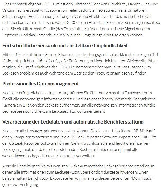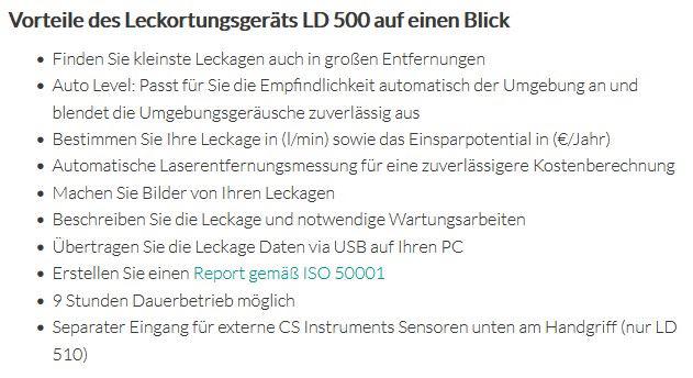 Das neue Leckortungsgerät LD 500 mit integrierter Kamera zur Leckagemessung und Leckageberechnung ist das ideale mobile Messgerät für den täglichen Einsatz. Mit der fortschrittlichen Sensorik können selbst kleinste Leckagen auf große Entfernungen kinderleicht in einem Arbeitsschritt geortet, gemessen und dokumentiert werden.